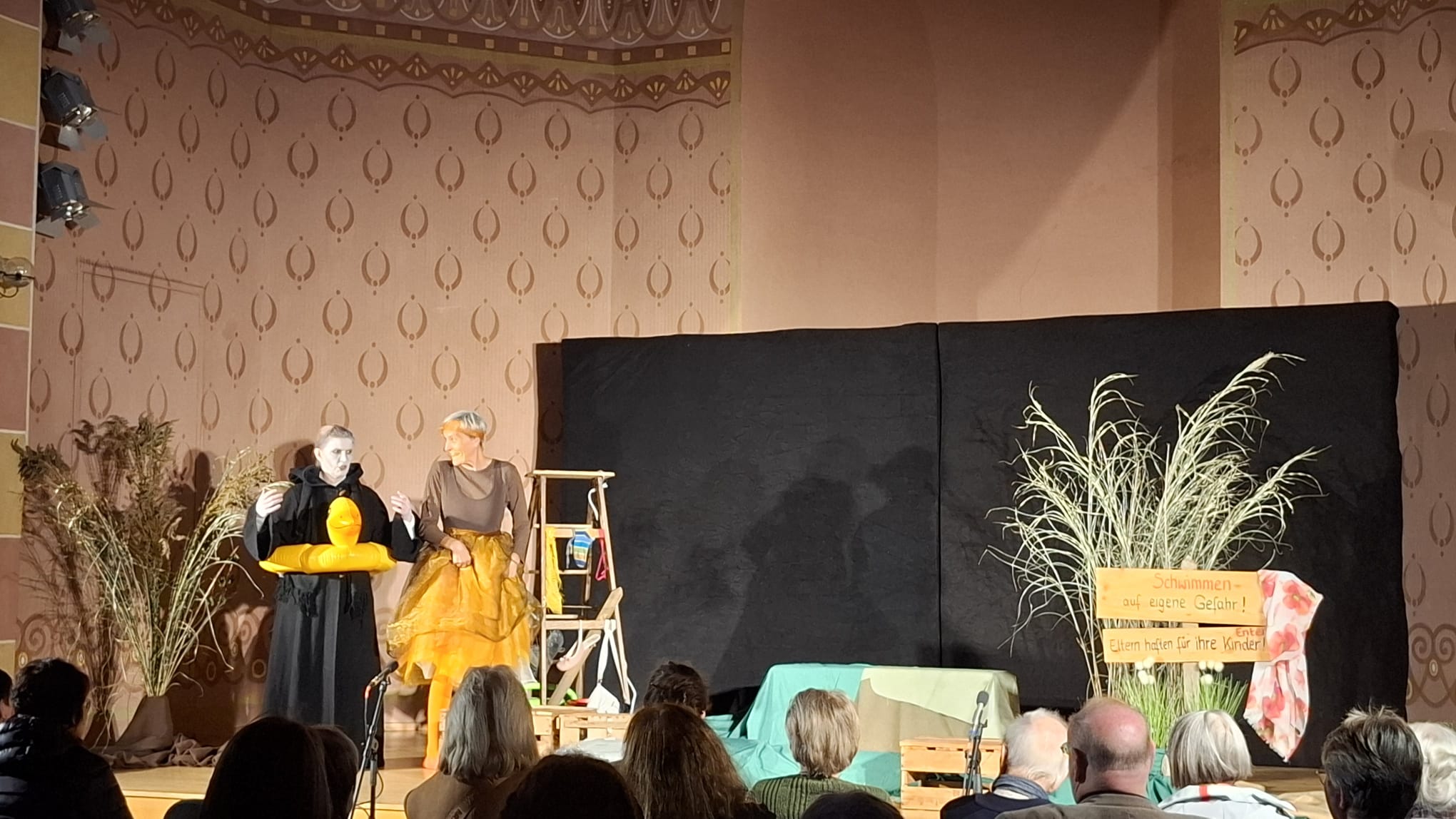 Mit viel Liebe zum Detail und großer Proffessionalität hat uns am Welthospiztag die Bartelsbühne Flammersfeld e.V. auf eine Reise in die letzten Tage und Stunden mitgenommen. Die Aufführung „Ente, Tod und Tulpe“, die einem Kinderbuch von Wolf Erlbruch nachempfunden ist, fand am Samstag, den 11.10.2025 in der Synagoge in Wittlich statt. Silke Düngen (spielte die Ente) und Annegret Spies (spielte den Tod) haben alle Besucher in ihren Bann gezogen. Unterstützt wurden sie beim Aufbau und der Technik von Sebastian Spies.